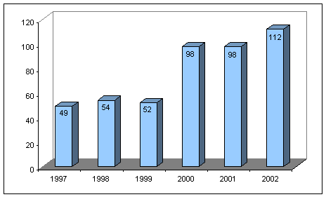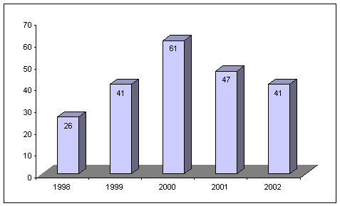 Durante sus períodos ordinarios de sesiones, la Comisión Interamericana lleva a cabo audiencias sobre casos individuales con la finalidad de recibir información, pruebas y/o alegatos sobre admisibilidad, fondo, cumplimiento de obligaciones o con el propósito de contribuir a la solución amistosa del asunto. La CIDH también concede audiencias con el fin de recibir información sobre la situación general de los derechos humanos en los Estados miembros. El cuadro precedente demuestra el aumento considerable de audiencias en los tres últimos años en relación con el número de audiencias celebradas en los anteriores cuatro años.